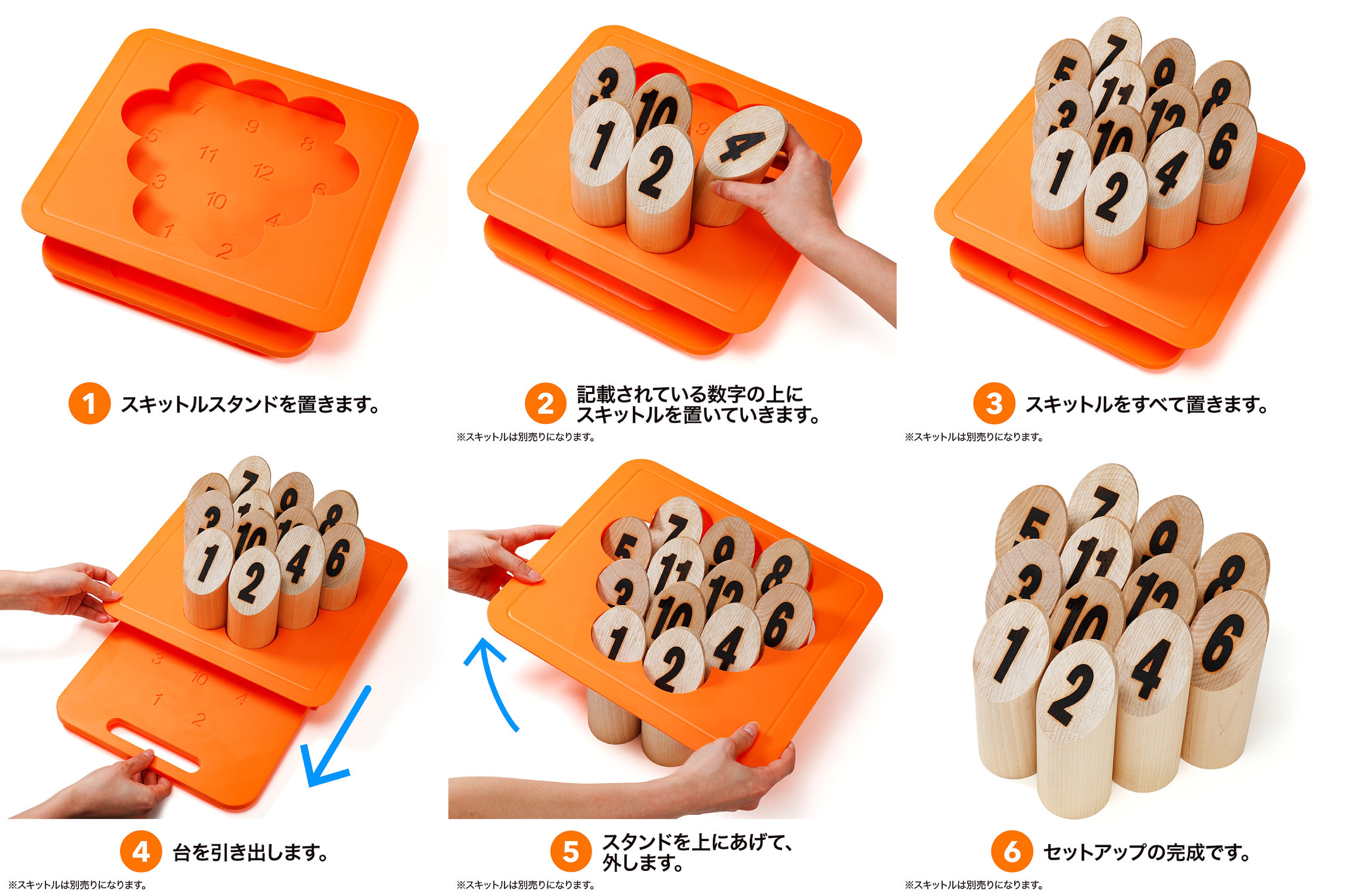 もう迷わない、スキットル配置。 準備は一瞬、すぐプレイ